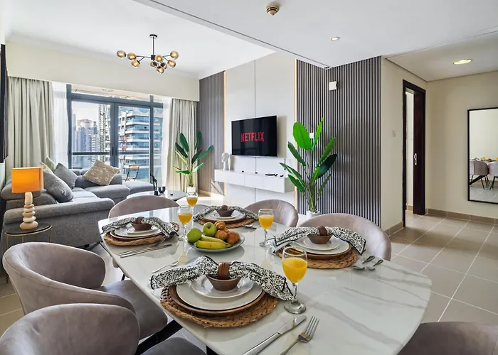 Staying at the 4-star Luxury Jlt 1Br 2 Beds In Room Lakeview & Pool hotel, you shouldn't miss Dubai's main landmarks, the urban JBR Beach (2.4 km the accommodation) and Cayan Tower, located nearly a 10-minute drive away.